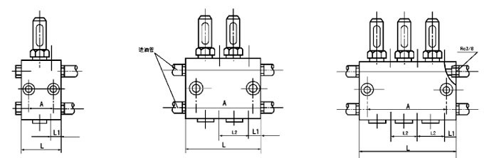 3、给油器的两个进油口分别与两条供油管连接,且两侧是贯通的,某一侧的进油口不使用时应用R3/8螺塞封堵。