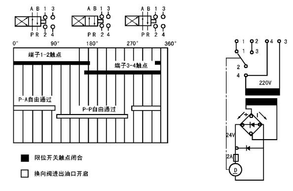 24EJF-P型(原SA-V 型)二位四通换向阀是一种采用直流电机驱动阀芯移动,以开闭供油管道或转换供油方向的一种集成化的换向控制装置;即使在恶劣的工作条件下(如低温或高粘度油脂),动作仍相当可靠。