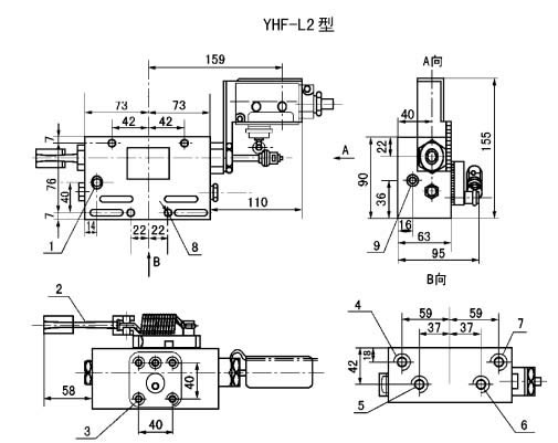 YHF-L1型阀与流量585mL/min的泵相配,安装于底板上。YHF-L2型阀与流量60和195mL/min的泵相配,安装于泵体上。
