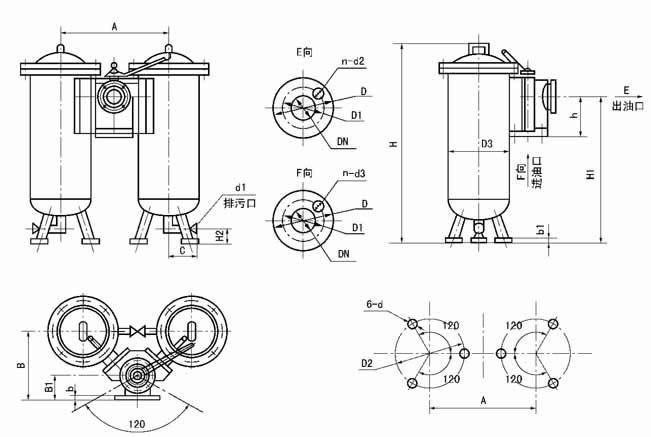 本产品适用于公称压力为0.63MPa的稀油润滑系统中,用以过滤润滑油中的污垢杂质,由于内部装有磁芯,因此还能吸附铁磁性的微粒(这种微粒能通滤芯)避免机械摩擦副的过早磨损;在性能上优于一般的过滤器;同样分为二组过滤筒和一个三位六通阀组成,工作时一筒工作,一筒备用,可实现不停车切换过滤筒,达到润滑系统可以连续工作的目的。