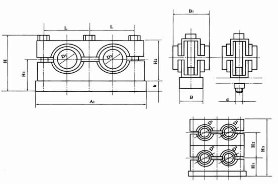 4、根据水平排列固定管子的数量不同,每种规格有两类管夹,即单管夹和双管夹,根据管夹与基面(支架)或机体连接方式不同,每种规格的管夹有带底板和不带底板两种。