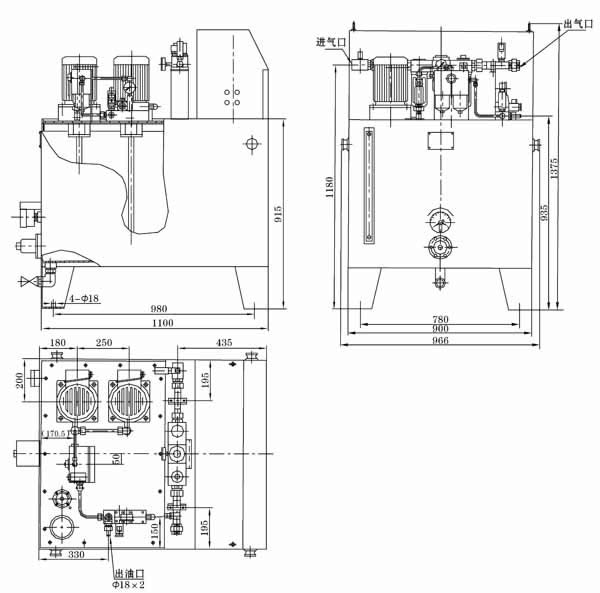 3、油箱油位低时应及时从空气滤清器的过滤网处加入同牌号的润滑油,油位到达低油位时电气连锁油泵不能启动,严禁人工在无油或低位以下时启动油泵工作。