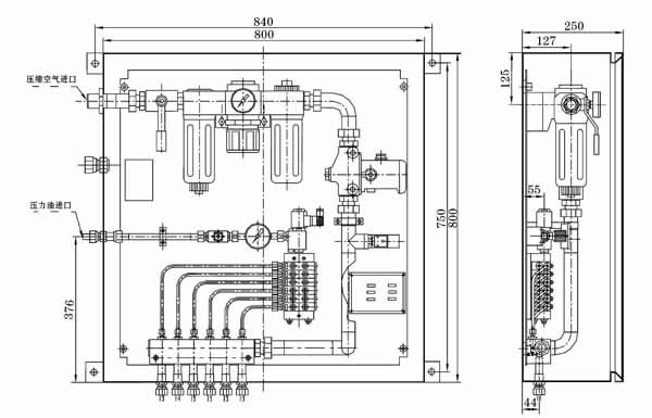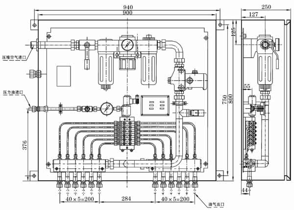 YQWXZ-G型油气卫星站,是集润滑油液定量分配、压缩空气处理、油-气混合于一体的集成化产品,全部元件均集成安装在一防护箱内,适用于不同工况条件下的单线-多区式大型油气润滑系统中。