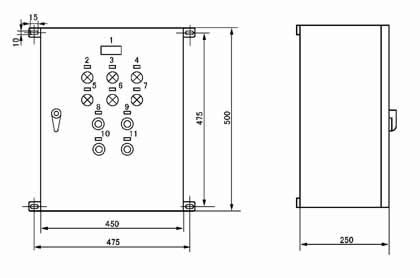 控制箱能发出“供油时间延长”、“加油泵超载”、“超负荷运转”等故障信号,箱内设有一组外部接点,可向主机或主控室发送系统运转状况(停止、运转、故障)信号。