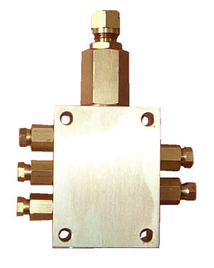 2、油气分配器适用于公称压力为0.6MPa油气润滑系统中, 它的作用是把从油气混合块中输送过来的油气定量地均匀分配到各个摩擦点。